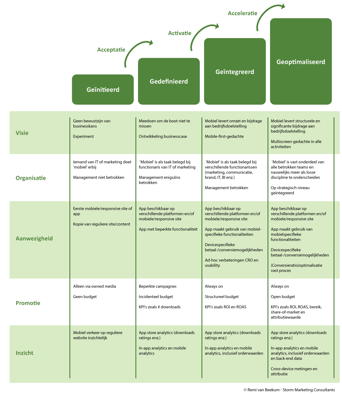 Bron: Remi van Beekum (StormMC), ‘Mobile Maturity Model’ – klik op het schema voor een grotere weergave