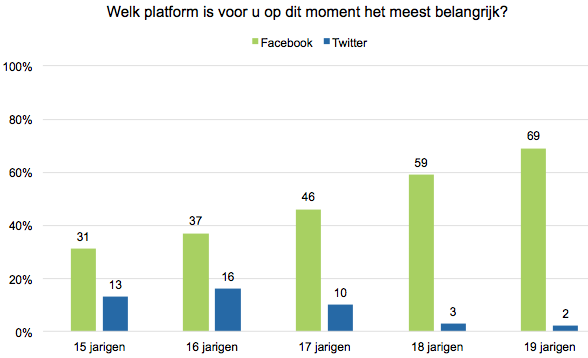 Meer dan de helft van de jongeren die vorig jaar Twitter het belangrijkst vond, vindt nu Facebook het belangrijkste platform.