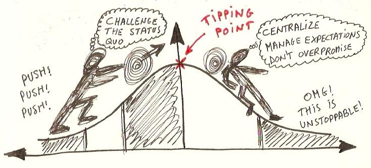 The tipping point is that magic moment when ideas, trends, or social behaviours crosses a threshold, tips, and spreads like wildfire – Malcolm Gladwell