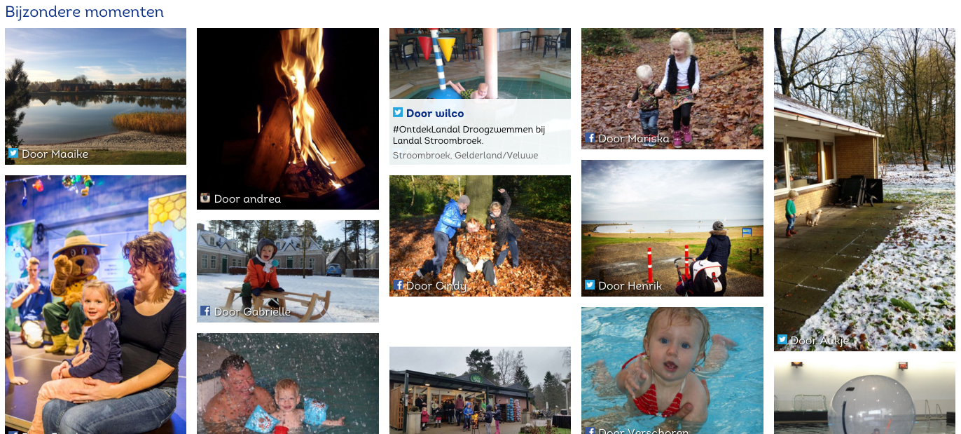 Een organisatie die haar doelgroep wist te bewegen om zelf content te maken, is Landal GreenParks. In oktober riep het vakantiepark haar bezoekers op om de bijzondere momenten die zij in of rondom één van de parken hebben beleefd, te delen op sociale media met de hashtag #OntdekLandal. Op deze manier werd de beleving van Landal via de doelgroep zelf naar buiten gedragen, ontstond er meer interactie en genereerde de organisatie meer zichtbaarheid.