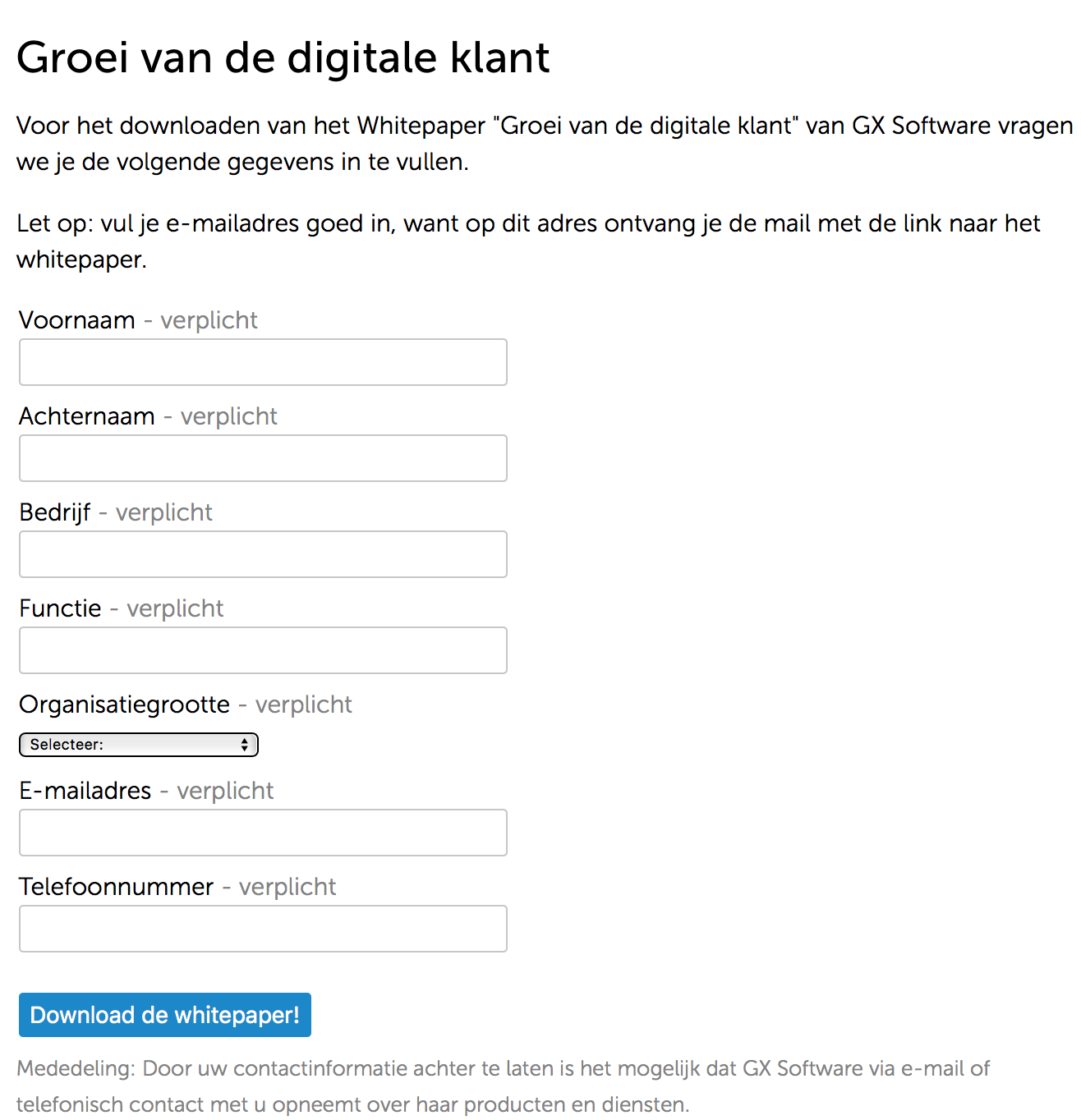 Voorbeeld whitepaperdownloadcampagne van GX Software