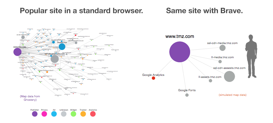 Anno 2018 wordt JavaScript echter voornamelijk gebruikt om advertentieruimte vanaf een externe server in een website te laden. De bedenker van JavaScript, Brendan Eich, heeft nooit deze intentie gehad bij het ontwikkelen van de technologie. “The Internet is broken and is being misused these days”, aldus Eich. Vandaar dat hij het voortouw heeft genomen in het ontwikkelen van een oplossing: de browser Brave.