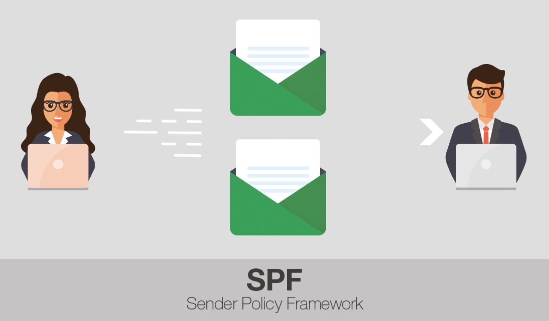 Een SPF-record (Sender Policy Framework) is een TXT-record dat net als de publieke DKIM-sleutel aan de DNS-zone van een domeinnaam toegevoegd dient te worden. In dit record kan worden aangegeven welke IP-adressen en/of hostnamen gerechtigd zijn om mail te versturen vanaf het domein. De ontvangende partij krijgt hiermee de mogelijkheid om op basis van het SPF-record e-mails toe te laten, in “quarantaine” te plaatsen of simpelweg tegen te houden. Als de versturende mailserver niet in het SPF-record van de domeinnaam is opgenomen zal de e-mail vanaf deze server direct als verdacht worden aangemerkt.