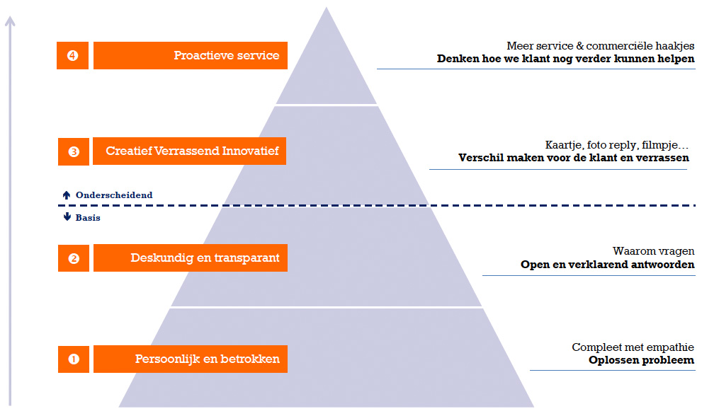 Het begint bij de basis: betrokkenheid en deskundigheid. Dat is nodig om het vertrouwen te winnen. Maar daarmee maak je het verschil niet meer. Het verschil zit aan de bovenkant van de piramide waar er creativiteit bij komt – zoals in bovenstaande voorbeelden.