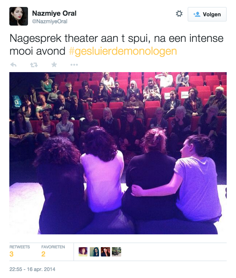 Dit positieve bereik wordt gerealiseerd door een groep van 1.200 auteurs die berichten over Theater aan het Spui deelden. Deze groep is zeer gevarieerd: van lokale en landelijke media tot artiesten en toneelgroepen. Het valt daarbij op dat deze groep een groter bereik heeft dan de online achterban van de Koninklijke Schouwburg en Dr Anton Philipszaal. De kanalen van Theater aan het Spui op Twitter en Facebook dragen hieraan bij, maar de berichten komen ook voort uit het enthousiasme van bezoekers en artiesten in het theater. Alleen theater Diligentia en Paard van Troje weten nog meer auteurs aan zich te binden. Diligentia doet dat onder meer door vaker interactie te hebben met artiesten met een groot persoonlijk bereik en daardoor grote zichtbaarheid.