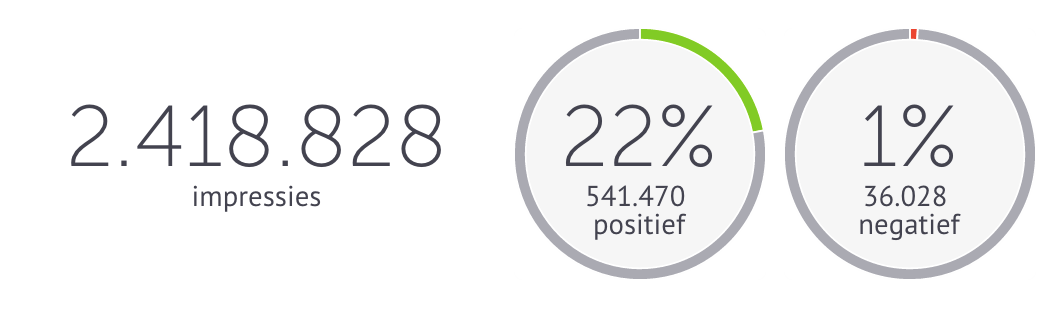 In 2014 zijn er online ruim 3.200 berichten (publiekelijk) gedeeld waar Theater aan het Spui in genoemd wordt, goed voor een online bereik van 2,4 miljoen impressies. Meer dan één op de vijf berichten (22 procent) is expliciet positief over het theater. Hierdoor ligt het positieve sentiment drie keer zo hoog als in de online uitingen over de Koninklijke Schouwburg en Dr Anton Philipszaal in Den Haag. Bij andere culturele instellingen, zoals theater Diligentia en popzaal Paard van Troje, ligt het positieve sentiment op een vergelijkbaar niveau. Blijkbaar lukt het Theater aan het Spui om met beperkte middelen toch vaak een positief geluid te laten horen.