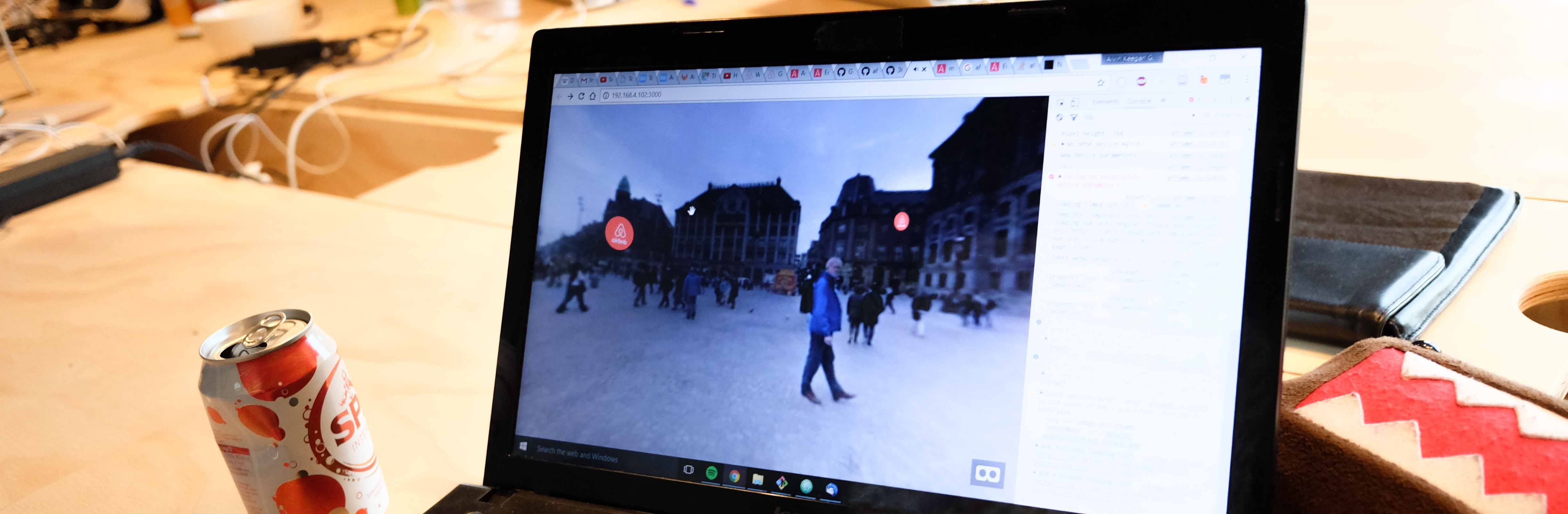 Het eerste doel van de hackathon was vast te stellen hoe je in één dag een werkend VR-prototype kunt maken. We hebben ervoor gekozen ervaring op te doen met WebVR. Dit is een experimentele Javascript API die ervoor zorgt dat je een virtual-reality-ervaring kunt bieden in een browser door gebruik te maken van je smartphone en een kartonnen VR-bril. Superlaagdrempelig dus qua hardware.