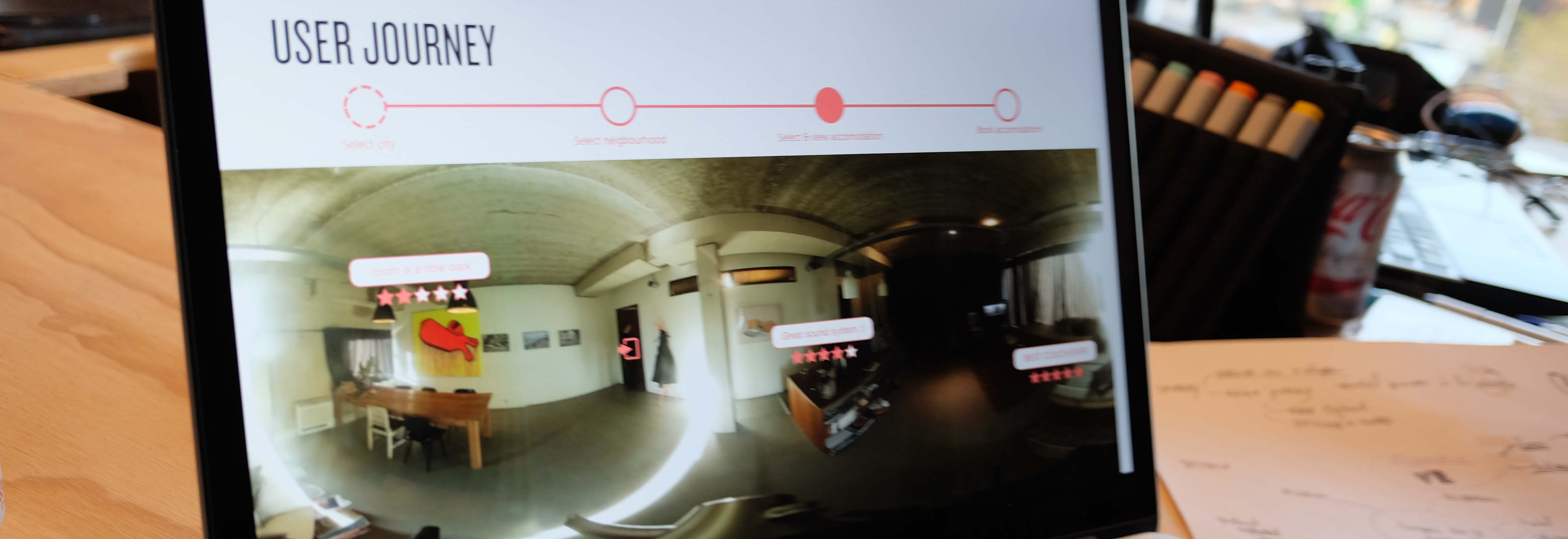 Het VR for hospitality-concept is hiervoor bedacht. Gebruikers kiezen de plaats en buurt die ze willen bezoeken en worden als het ware geteleporteerd naar die omgeving. De buurt wordt zichtbaar met een 360-gradenvideo. Bij het ontdekken van de buurt zien ze de beschikbare accomodaties en met een klik kunnen ze naar binnen gaan. In het huis (of hotel) zien ze reviews in de context van waar ze zich bevinden – in de badkamer zie je dus reviews die daarover gaan. Uiteraard is het ook mogelijk om direct vanuit deze VR-omgeving je accomodatie te boeken.
