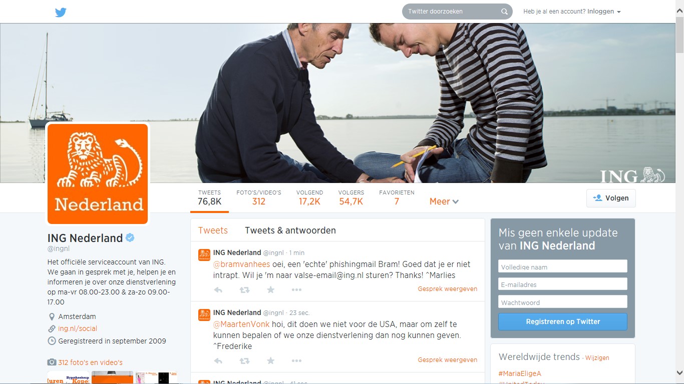 Uitnodigende retoriek bij beschrijving webcare account ING