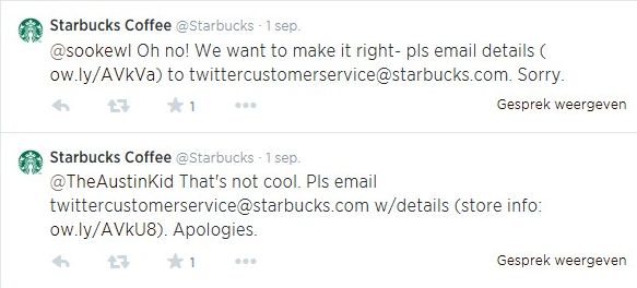 1. een formele webcare reactie waarbij de consument persoonlijk werd aangesproken,