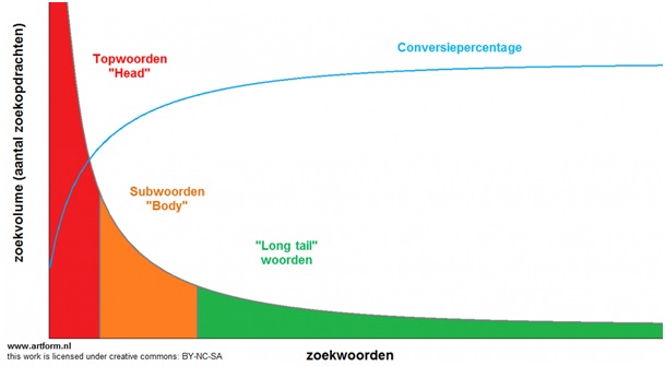 Over het algemeen zullen head en body terms dan ook met SEO getarget worden en de body en long tail zoektermen met SEA ingekocht worden.