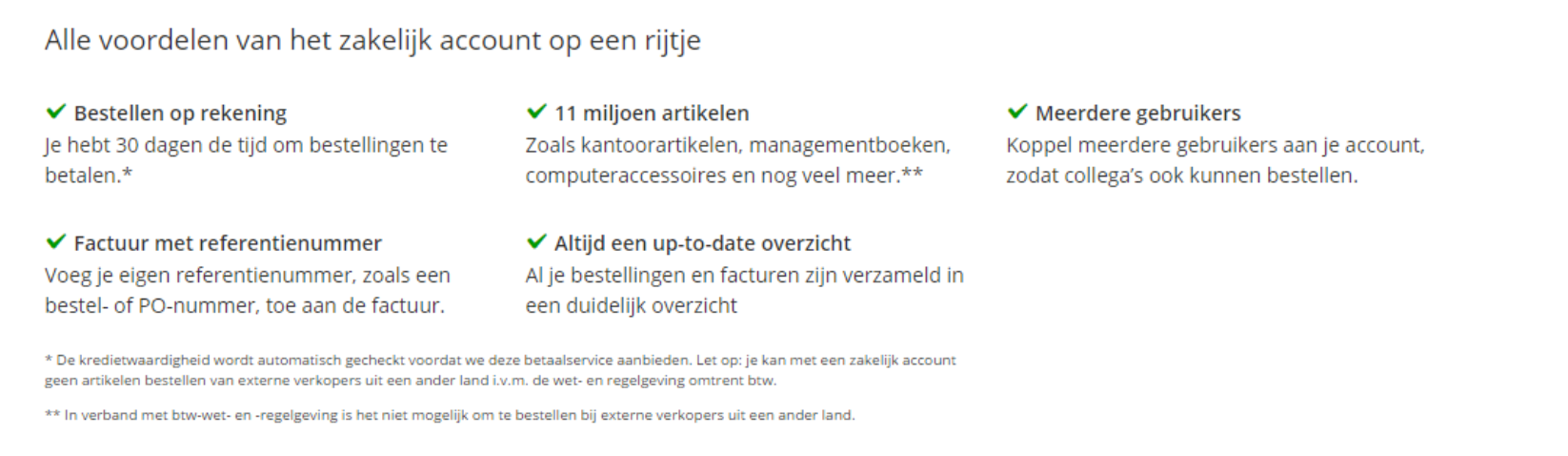 Bol.com benoemt duidelijk de voordelen van een zakelijk account