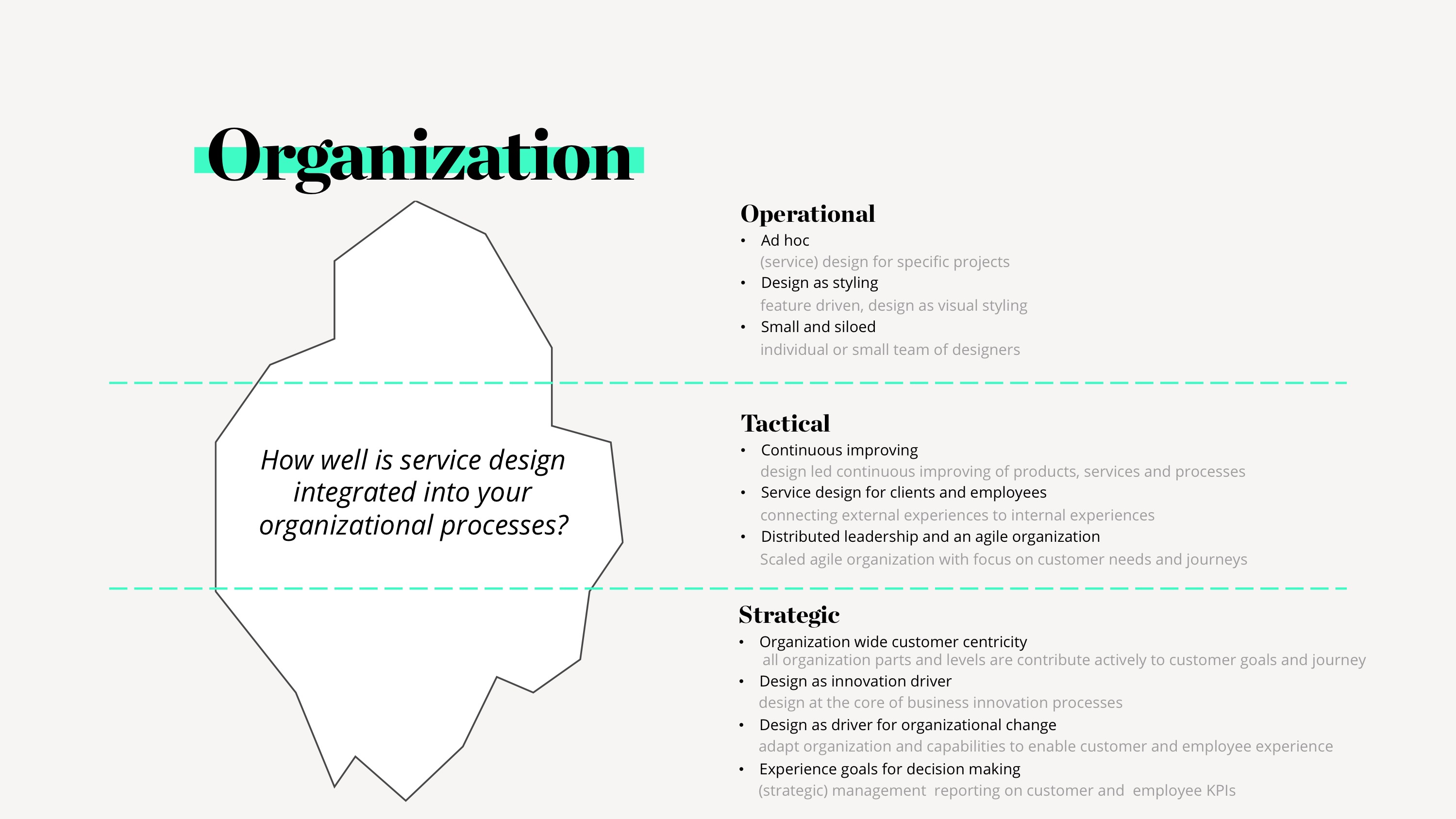 - Organization: Hoe goed is service design geïntegreerd in de organisatie?