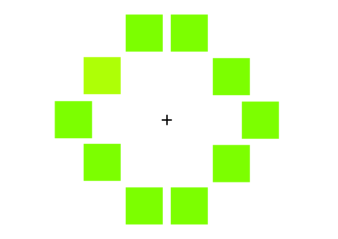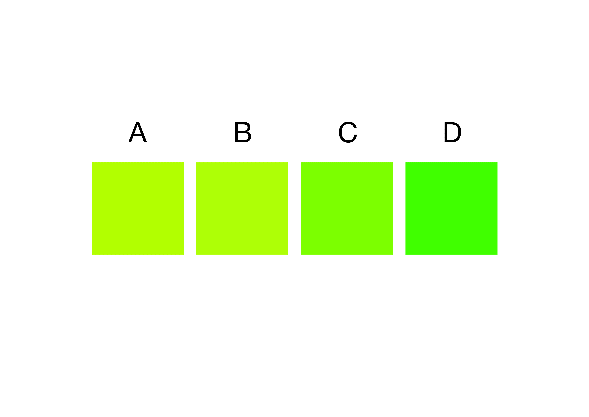 Hoe snel pik je de kleur eruit die anders is? Koreanen zijn sneller en accurater omdat ze een ander woord gebruiken voor A en B dan voor C en D.