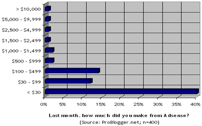 Naast het feit dat er steeds meer websites zijn die de content afstemmen op links waarmee het meest kan worden verdiend (soap-principe), heb ik altijd getwijfeld over de winstgevendheid voor website-eigenaren. Dit laatste wordt nu min of meer bevestigd door een klein onderzoek van Darren Rowse onder webloggers waaruit blijkt dat slechts een handjevol bloggers een redelijk inkomen genereert met Google Adsense.