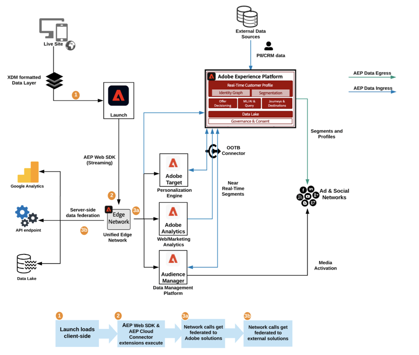 [ bijschrift afbeelding 2] Voorbeeld techstack van een middelgroot bedrijf die net aan de slag gaat met Adobe. Als marketeer moet je leidend zijn in het uitdenken van dit ecosysteem. Bron: Rohan Kapoor, product manager bij Adobe.