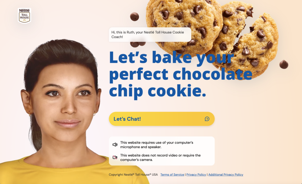 De technologie stelt ons in staat de dialoog met de consumenten steeds persoonlijker te maken. Was het eerst nog een chatbot die alleen met tekst kon werken, inmiddels zijn er steeds meer toepassingen die de woorden vervangen door een door artificial intelligence vormgegeven humanoid. Een robot die is gemaakt om op een mens te lijken. Koppel dat aan de naam Toll House, de naam van de herberg waar Ruth Wakefield de allereerste chocolate chip cookie bakte, en je hebt een prima tool voor consumenten die hulp nodig hebben bij het bakken van deze lekkernij door gewoon alleen je stem te gebruiken. En als dat even niet lukt de toetsen het werk te laten doen.