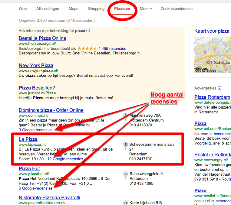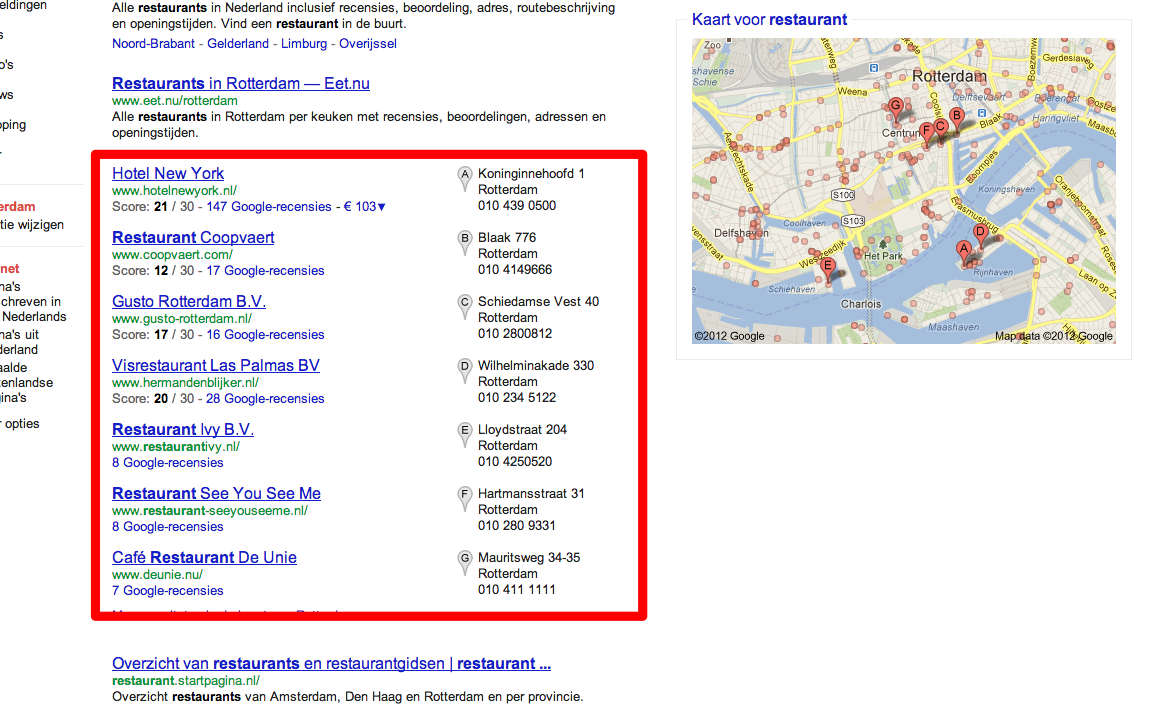 Afbeelding 3: zoekresultaten uit heel Nederland (nieuwe Google layout)