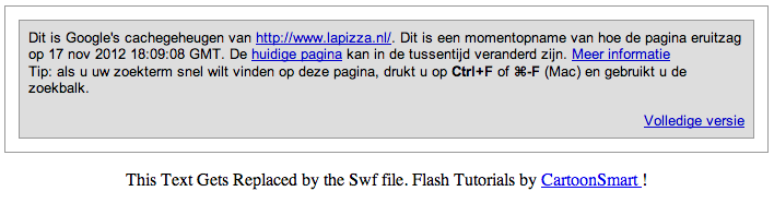 Afbeelding 12: Google cache laat zien dat de tekst in Flash niet indexeerbaar is