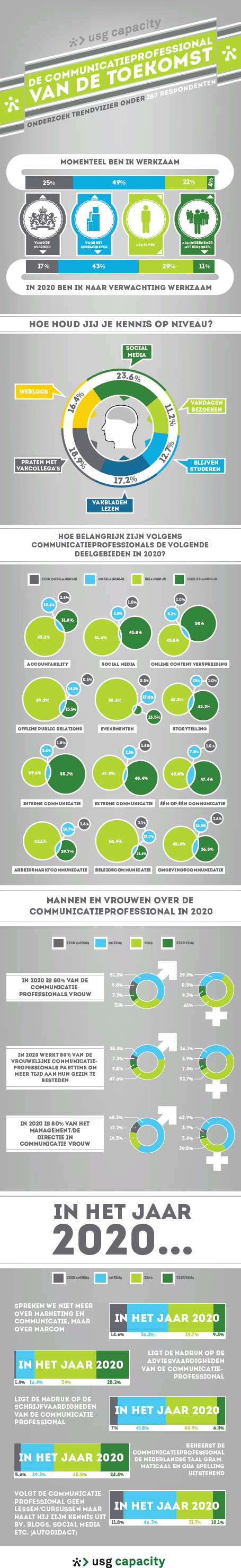 Wat denk jij? Hoe ziet de communicatieprofessional van de toekomst eruit? Zal er veel veranderen, of zal dat allemaal wel meevallen? Bekijk hieronder de infographic met de volledige resultaten van het onderzoek. En doe de volgende keer zelf ook mee!