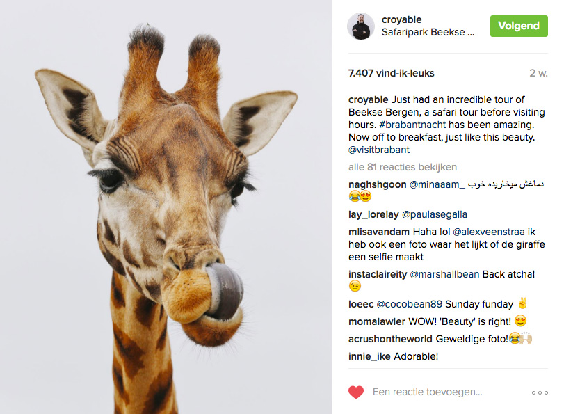 Ernst noemt ook interesses als selectiecriterium. Daarin ging ze soms ver. “Neem Travels of Adam, een populair Duits hipsterblog. Ik las dat de partner van Adam (tevens ‘fotograaf van de blog’ graag nog eens op safari wil naar Afrika. Hen hebben we dus naar Beekse Bergen gestuurd. En omdat Adam graphic designer is, hebben we dat gekoppeld aan een bezoek aan Eindhoven, de designhoofdstad van Nederland. We hebben dus specifiek gekeken naar blogs om te zien wat het beste bij iemand paste.”