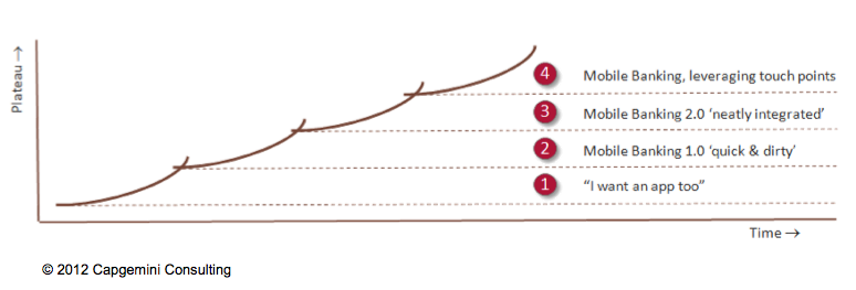 De meeste banken zitten wel op het derde plateau van volwassenheid als het gaat om mobiel bankieren. De uitdaging voor de toekomst ligt bij het vierde plateau: how to leverage touchpoints? De mobiel bankierende klant heeft vaker, zij het kortstondig, contact met zijn bank. Er ligt voor banken de uitdaging om die touchpoints beter te benutten, door meer en op het juist moment service te bieden of op een gepaste wijze relevante aanbiedingen te doen. Hoe kun je klanten die niet meer in een bankkantoor komen en nagenoeg alleen online transacties met je doen nog verleiden tot het kopen van je producten?
