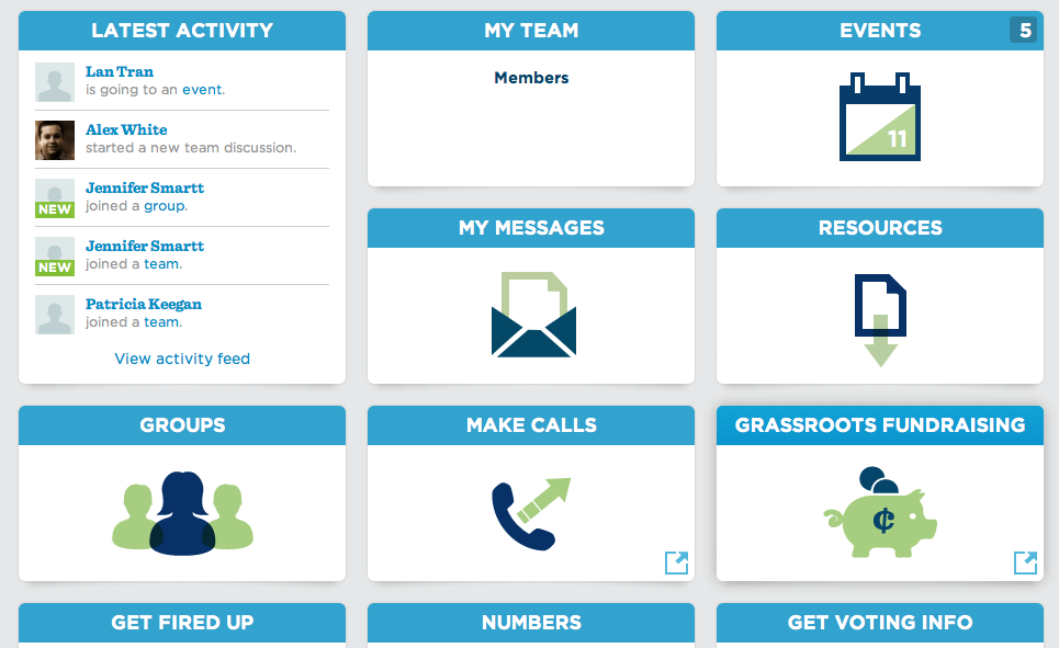 De effectiviteit van het GOTV-proces (deuren kloppen, mensen bellen, enthousiasmeren, informatie over kiezers verzamelen, mensen naar de stembus rijden) kreeg in 2012 een schop onder de kont door de Dashboard-tool. De hele fysieke infrastructuur van de campagne, van veldkantoortjes tot clipboards, was gegoten in een verbluffende toegankelijke en effectieve tool die vrijwilligers via de tool anderen liet bellen, evenement organiseren en fondsen werven. Het was zelfs mogelijk om als er in de eigen wijk nog geen Obama-organisatie was een volledig nieuw team op te zetten. Dit team kon vervolgens online opgeleid en ingezet worden.