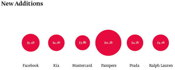 Interbrand stelt elk jaar de Best Global Brands ranglijst samen met de top 100 van ’s werelds meest waardevolle merken. De methodiek die Interbrand hanteert onderzoekt de diverse interacties tussen merk en consument en de manier waarop die bijdragen aan de bedrijfsdoelstellingen (zowel financieel als in termen van klantverwachtingen).