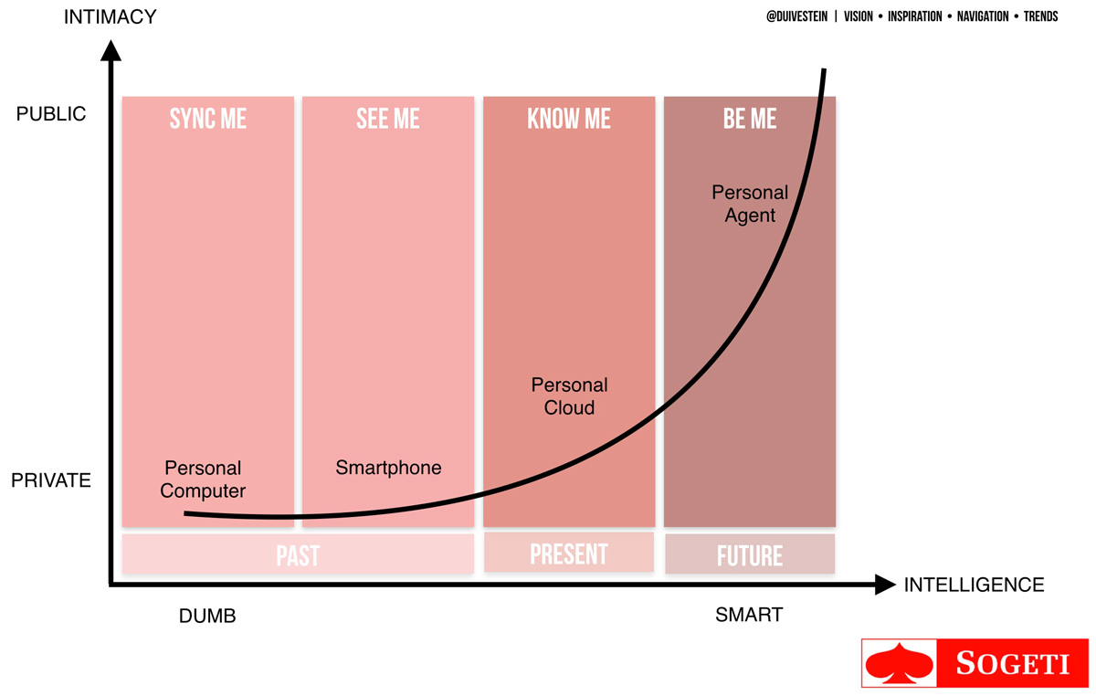 Google Glass, Galaxy Gear, Fitbit en JawBone UP trappen de verder gaande mobilisering van hardware en data af. Een nieuwe fase waarin de strijd ontbrandt om de nieuwe vorm-factor, waarin de basis wordt gelegd voor nieuwe manieren van interactie tussen mens en computer en ‘systems of engagement’ hun empathische vermogen sterk gaan ontwikkelen. In het komende decennium wordt personal computing pas echt persoonlijk: in, op en om het individu.