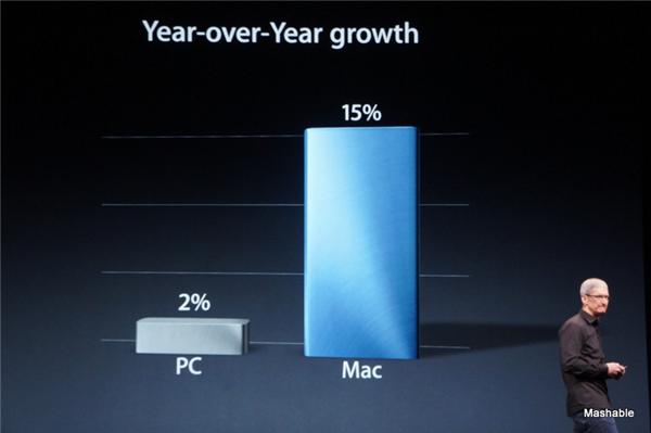 Eerder op de avond maakte Apple enkele cijfers bekend over onder andere Mac en de iPad. Allereerst kwam de Mac aan bod. Apple is in de VS de grootste speler in de laptopmarkt. Het afgelopen jaar groeide de afzet van Apple met 15%.