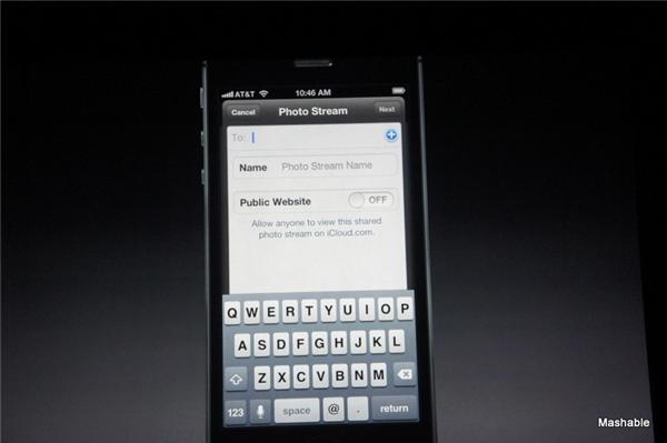 De iPhone 5 heeft een 8 megapixel camera, die op een resolutie van 3264 bij 2448 pixels fotografeert. Nieuw is de mogelijkheid om panoramafoto's te maken. Daarnaast worden foto's direct in een fotostream gedeeld. “The photostream sharing in iOS 6 is great. It's not an Instagram rival at all — but it puts things like Bump and Glassboard in a lurch.”, vertelt Cook. Vrienden krijgen push notificaties van foto updates, en is het mogelijk om foto's te liken. Het lijkt daarmee op een soort privé-versie van Instagram.