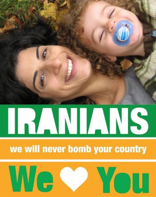 Steeds vaker beëindig ik het telefoongesprek met familieleden in Teheran onrustig, de stijgende angst voor een clash tussen de overheden van Israël en Iran lijkt met de dag te groeien. Te midden van deze stijgende angst maakte mijn hart afgelopen zaterdag echter een klein sprongetje toen ik een Facebook-pagina onder ogen kreeg van het Israëlische koppel van grafisch ontwerpers Ronnie EDRI en Michal Tamir. Zij besloten om dwars door de groeiende angst en vrees over de mogelijkheid van een Israël – Iran oorlog heen een vredesinitiatief te beginnen op Facebook.