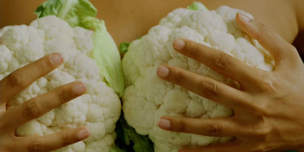 Even voor wie de campagne nog niet heeft gezien; over een zwoel muziekje dat je direct aan ‘Je ’t aime moi non plus‘ doet denken, zie je de door twee bloemkolen bedekte borsten van een vrouw. Een minstens zo zwoele stem die je ooit onder vier uur ’s nachts uitgezonden tv-commercials voor sekstelefoonlijnen hoorde, vraagt ons of we ook trek in bloemkool hebben. Dit alles neemt een seconde of 10 in beslag om vervolgens een harde cut naar de werkelijke boodschap te maken: de nieuwe pizza van New York Pizza, nu met bloemkoolbodem.