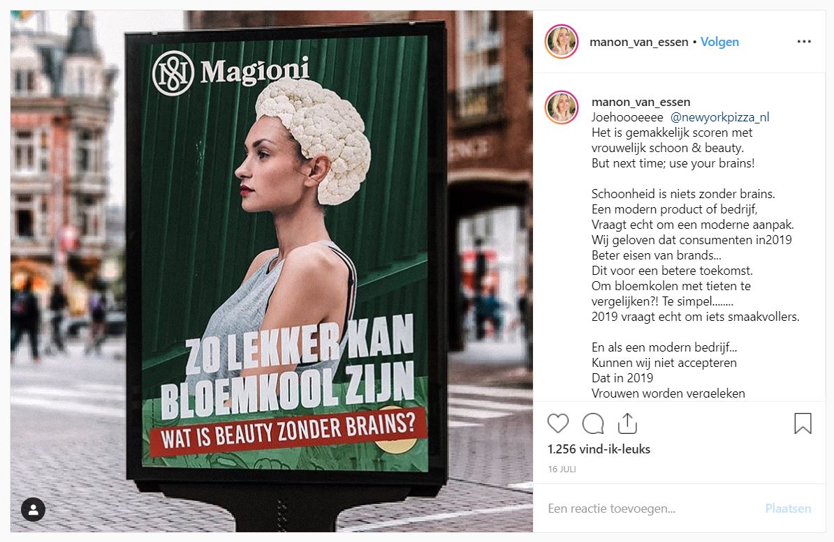 Ja, de algemene teneur op internet is dat de campagne vooral ‘irritant’ gevonden wordt. Maar dan is er de tegenstroom, te beginnen bij New York Pizza zelf. Het bedrijf is tevreden over de resultaten en de marketingmanager stelt dat je beter over de bloemkool als metafoor, dan als pizzabodem kunt praten. En als het gaat om aandacht, dan kan je hem geen ongelijk geven. Daarin wordt hij gesteund door de groep die er met de beste wil van de wereld geen kwaad in ziet. Die al dat gezeur en gezever maar flauwekul vindt: “Alsof er geen grotere problemen in de wereld zijn.”