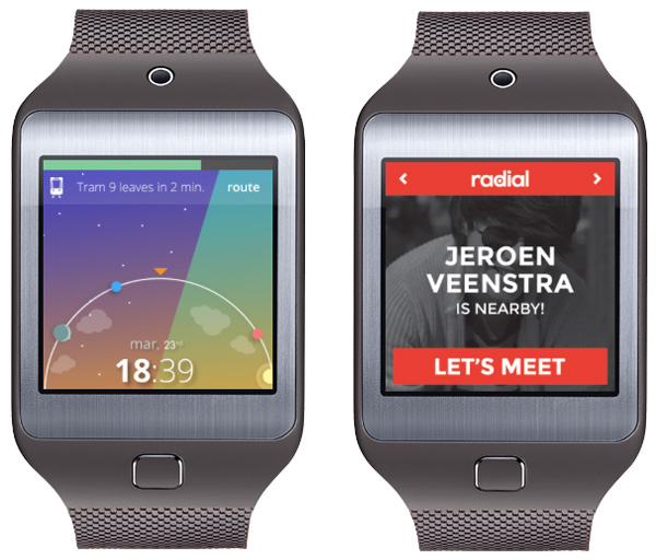 Een app die dat goed voor elkaar had was Radial, die de publieksprijs won. Radial is eigenlijk niet meer dan een smartwatch-variant van de nieuwe Foursquare-app Swarm: de app waarschuwt wanneer vrienden in de buurt zijn, zodat je ermee kunt afspreken. Radial heeft een duidelijke interface, consequent kleurgebruik, probeert niet teveel informatie op één scherm te proppen en lost een concreet probleem op: weten wanneer vrienden in de buurt zijn.