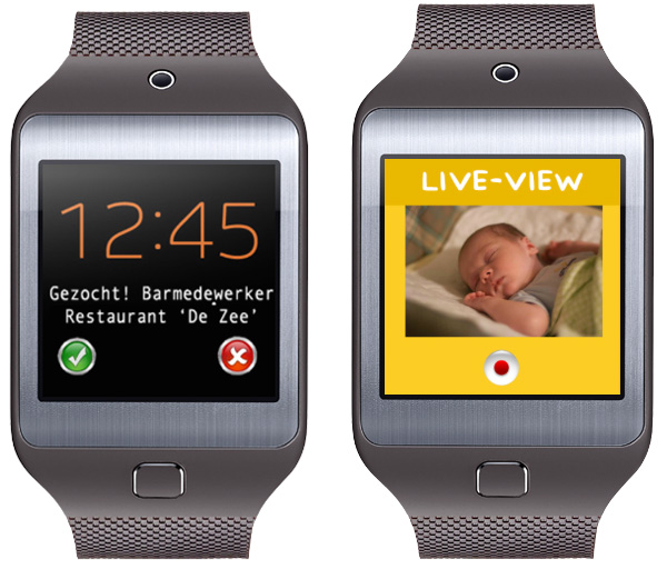 - De eerste zijn. Ik noemde het eerder al even: als je nu alvast gaat nadenken over je smartwatch-app, kun je straks voorsprong hebben omdat je de eerste bent. Dat is ook de reden waarom Samsung de studentenwedstrijd We Are Able sponsorde: er is nog niet zoveel en Samsung zit te springen om bruikbare apps. En hoewel er straks best ontwikkelaars zullen zijn die bestaande apps aanpassen voor smartphones, slaan ze daarbij een stap over: nadenken hoe ze nou echt maximaal gebruik kunnen maken van de ervaring op je pols. Misschien moet je niet je complete smartphone-app gaan aanbieden, maar één functie waar mensen echt op zitten te wachten.