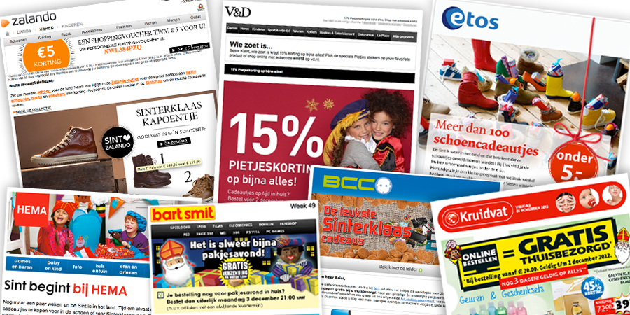 Na de verzending van HEMA was het lange tijd behoorlijk stil in retailland op het vlak van e-mailmarketing en Sinterklaas. Pas in de dagen voordat de Sint voet aan land zette, na een lange bootreis uit Spanje, speelden marketeers in hun e-mailuitingen in op Sinterklaas. In de week voorafgaand aan de intocht verstuurden 11 retailers, waaronder ook Kruidvat, Jumbo, Bol.com en Xenos, een nieuwsbrief met daarin een verwijzing naar Sinterklaas(aankopen). De ene retailer besloot in de subjectline op Sinterklaas in te spelen, andere retailers deden dat enkel in de content.