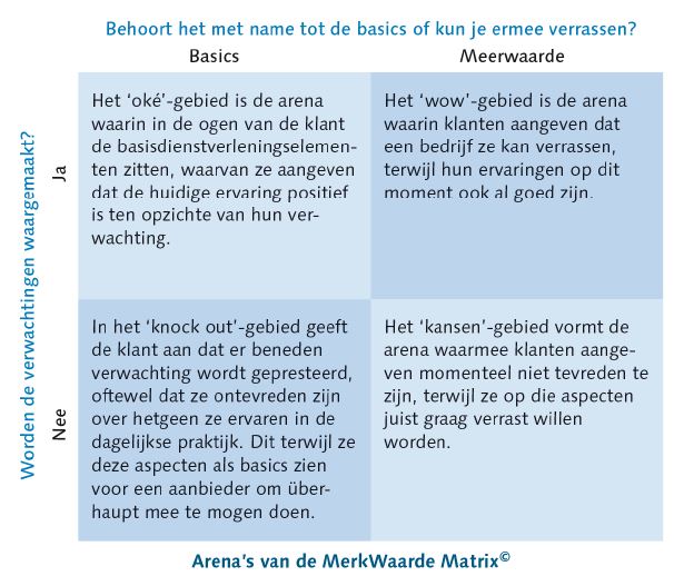 Dat zorgt ervoor dat je ziet welke aspecten als ‘oké’ of juist als ‘wow’ worden ervaren, en tegelijkertijd ook op welke criteria beneden verwachting wordt gepresteerd en klanten ontevreden zijn: het ‘knock out’- en het ‘kansen’-gebied. Als lezer word je nieuwsgierig gemaakt hoe het nu zit met je eigen bedrijf en aangespoord om dit zelf te gaan onderzoeken. Uiteraard hebben de meeste bedrijven hiervoor een partner nodig, zullen het moeten uitbesteden.