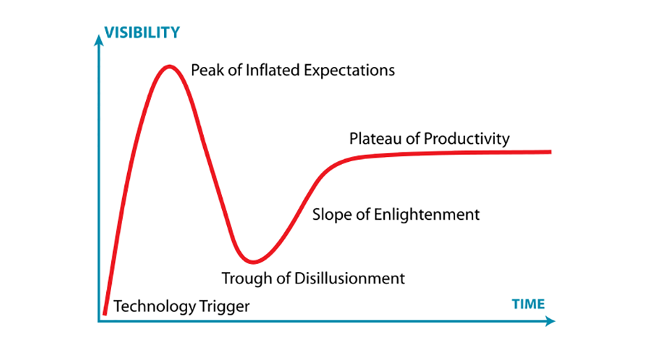 Daarom is het volgens mij weinig zinvol om algemene discussies te voeren over de ‘ROI van contentmarketing’, ‘de ROI van social media’, etc. Die ROI hangt van zoveel factoren af, dat je niemand serieus moet nemen die claimt dat een middel altijd en overal werkt. Dat soort overtrokken statements kom je helaas nog steeds tegen. En ik begrijp je allergie daarvoor. Dat is precies de ’trough of disillusionment’ waar we nu in zitten; zulke hooggespannen verwachtingen (“contentmarketing werkt altijd en overal”) kunnen natuurlijk nooit worden waargemaakt.