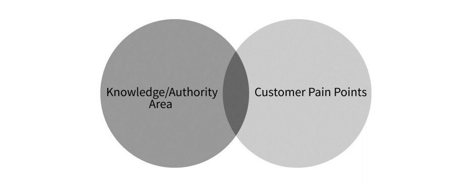 De ‘sweet spot’ voor contentmarketing: de overlap tussen jouw expertisegebied en de pijnpunten van jouw doelgroep (bron: CMI)