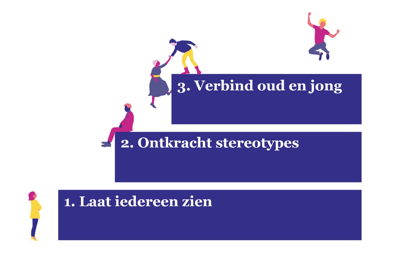 Deze stappen zouden tot een meer inclusieve wereld kunnen leiden, waarin diversiteit in leeftijd omarmd en gevierd wordt. Waarin we kijken naar wat we nog niet van elkaar weten in plaats van wat we denken al wel te weten. Waarin we zoeken naar wat we van elkaar kunnen leren in plaats van te zoeken naar wat onszelf beter maakt dan de ander. Waar we in evenwicht zijn met geven en nemen en alle generaties daarbij betrekken. Alleen als we allemaal ons steentje bijdragen, kunnen de generaties dichter bij elkaar worden gebracht.
