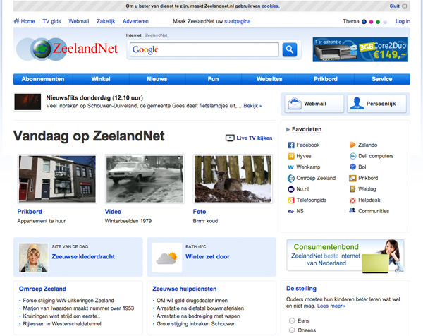 Ja, een deel van onze traffic is te verklaren uit het feit dat onze klanten automatisch ZeelandNet als startpagina krijgen ingesteld, maar mensen zijn handig genoeg om dat te omzeilen. We zijn ook wel meer dan dat, we zijn gewoon een serieuze portal voor Zeeuwen. Mensen hebben ook eerder een associatie met ons als portal dan als provider.