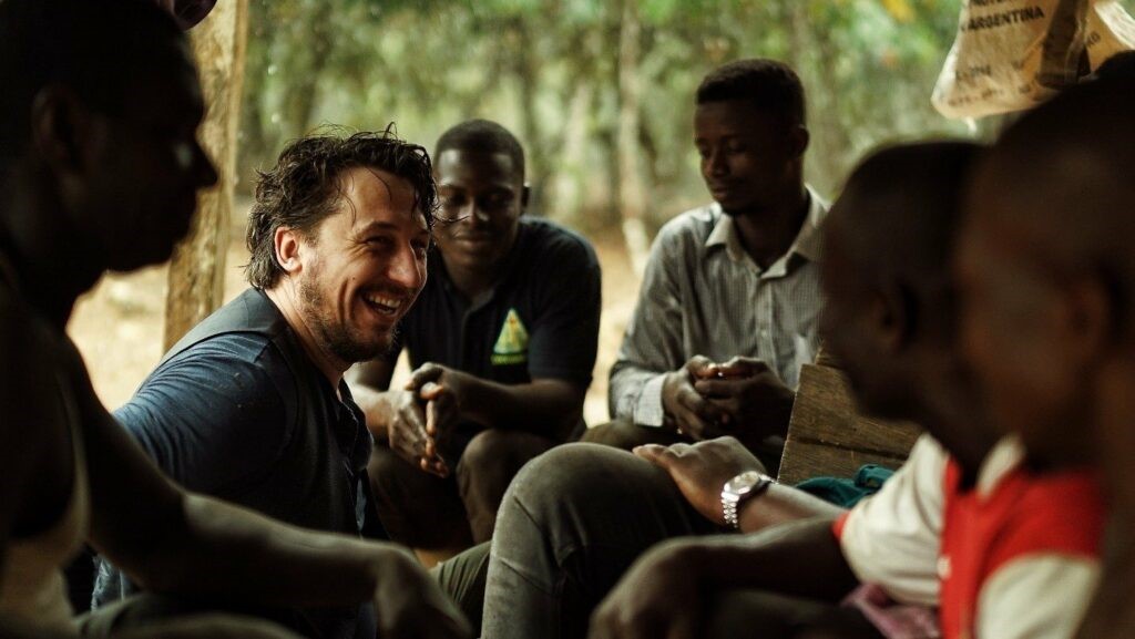 Foto: Lars Gierveld tussen de boeren in Banko, Ghana. Credits: Samie Reynaerts