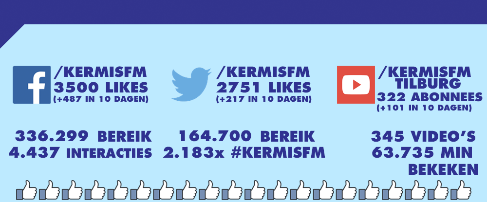 Wie vooraf dacht dat we online niet echt buzz konden creëren met zo’n lokaal evenement, komt van een koude kermis thuis. Ruim 160K bereikte personen op Twitter en ruim 300K bereikte personen op Facebook is namelijk best een goede score. Zonder ook maar een euro aan advertentiebudget. En dat biedt kansen. Want als Kermis FM dit kan, dan kan dat lokale event bij jou in de buurt dit ook.