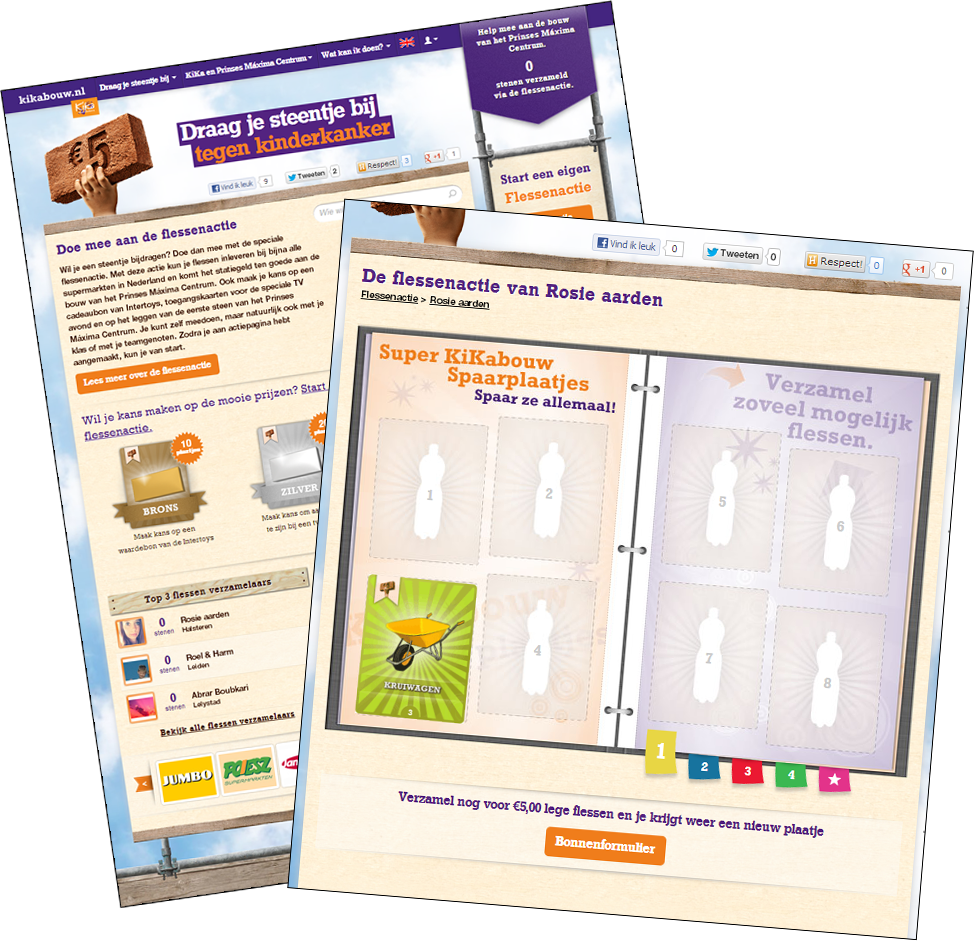 We zijn de bouw begonnen met de kern van het concept, het kopen van steentjes. In latere sprints zijn onder andere de module voor mensen die eigen acties wilden opzetten, de website voor het belpanel tijdens de TV-avond, de module voor acties van bedrijven en de tenslotte de flessenactie voor kinderen toegevoegd. Vooral bij die laatste functionaliteit bleef het lange tijd onduidelijk wat er nodig was, omdat de verschillende supermarktketens andere behoeften hadden.