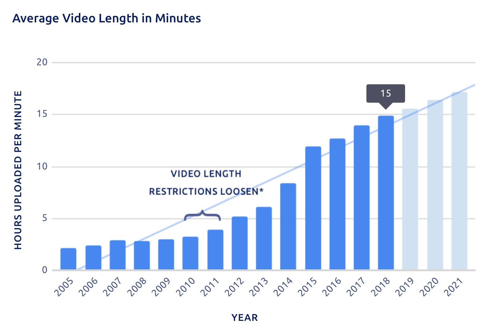 De gemiddelde YouTube-video wordt steeds langer. De gemiddelde lengte van een YouTube-video is tegenwoordig vijftien minuten, blijkt uit onderzoek van Pew Internet Research. Deze stijging wordt veroorzaakt door het doel van het platform, dat is om gebruikers zolang mogelijk vast te houden, waardoor er dus een sterke focus op kijktijd ligt. Steeds meer creators houden rekening met deze focus en maken langere video’s. The Verge beschreef onlangs deze ontwikkeling. Onderzoek van Pex bevestigt deze trend en de verwachting is dat de gemiddelde lengte de komende jaren enkel zal groeien. Hoe kun je hier als merk op inspringen? Investeer in minder maar langere videocontent. Verwacht niet dat het doorplaatsen van jouw ultrakorte video’s – die het zo goed doen op Facebook en Instagram – je veel (organische) views zullen opleveren op YouTube.