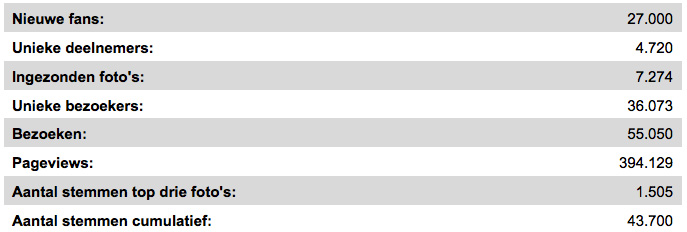 Aan het einde van de Prenatal-fotowedstrijd is het aantal fans met 300% gegroeid naar 39.000 fans. Hieronder een overzicht van de cijfers: