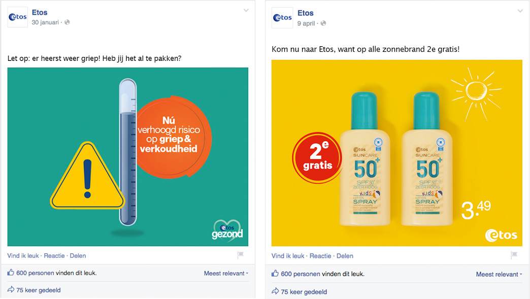 Hoe balanceer je als merk op de scheidslijn tussen commercie enerzijds en interactie anderzijds? Hoe reageren consumenten op content? Is het in de perceptie van de gebruiker erg wanneer merken commercieel actief zijn op Facebook? Onze ervaring zegt van niet, maar toch waren deze vragen voor ons aanleiding om in samenwerking met de Vrije Universiteit Amsterdam te onderzoeken wat de impact van verschillende typen social content is op consumenten. Hierbij is een vergelijking gemaakt tussen typische social berichten, die tot doel hebben de conversatie aan te gaan met het publiek, en commerciëlere marketingberichten, die gericht zijn op kortingen en andere speciale aanbiedingen. Dit onderzoek is uitgevoerd met content van het merk Etos.