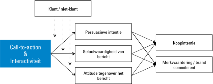 De belangrijkste vragen uit het onderzoek waren gericht op hoe mensen de verschillende typen content ervaren en wat de impact is van het bericht op de koopintentie van een persoon en de waardering van het merk. Voor de waardering en ervaring van het bericht is gekeken naar variabelen als geloofwaardigheid, persuasieve intentie en attitude naar het bericht. Voor de waardering van het merk is gekeken naar brand commitment. Dit is in onderstaand conceptueel model samengevat.