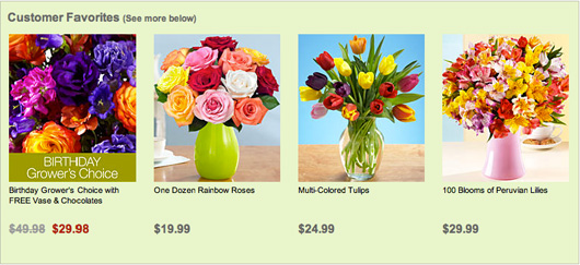 In het voorbeeld van Pro Flowers (hieronder) geldt het anker niet alleen voor het eerste product, maar voor de hele rij met producten. Dus door met een duurder product te beginnen voelen de volgende producten goedkoper.